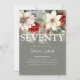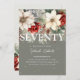 This gorgeous festive floral 70th birthday invitation is perfect if you having a birthday celebration during the winter months. Design features a chic sage green background decorated with gorgeous tradiational red and ivory winter florals and other christmas botanical foliage, faux gold confetti and an elegant birthday party template that is easy to customize with your own event details.