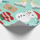Celebrate the season with this enchanting wrapping paper featuring a blue, ice-like background adorned with cheerful holiday icons. Playful snowmen in Santa hats, cozy red plaid mittens, festive Christmas-themed envelopes, winter skates, colourful wreaths, knitted tartan hats, coffee mugs, small honey jars, and classic bells create a lively scene perfect for winter gift-giving. Sized at 30 inches by 6 feet, this high-quality wrap brings warmth and holiday charm to every gift under the tree.