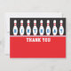 carte de remerciements plat de Bowling (4,5 x 6,25 po) avec une rangée de quilles et le mot "Anniversaire" épelé sur les pins. Correspond à la même invitation de fête d'anniversaire de style. Pour obtenir de l'aide ou des demandes personnalisées, veuillez utiliser le lien de contact du magasin.