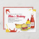 Préparez-vous à griller et à vous détendre avec cette invitation à la fête d'anniversaire, idéale pour les fêtes d'été et de jardin ensoleillées! Doté d'un design capricieux avec hamburgers et hot-dogs souriants, éclaboussures ludiques de ketchup et de moutarde, et d'audacieuses vibrations au barbecue, cet invitation donne le ton d'un barbecue extérieur clinquant. Que vous planifiez un bain pour enfants ou un repas tout-âge, ce design gai est idéal pour tous ceux qui aiment la bonne cuisine, les bons amis et le soleil. C’est la meilleure façon de lancer une fête jardin remplie de rires, de jeux et de souvenirs grillés !