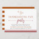 Parfaitement charmant dans les nuances d'automne de grenat et de citrouille, notre soirée Thanksgiving Eve invite les invitations amis et la famille à partager quelques petites bouchées, cocktails et vin avec vous avant la journée Thanksgiving. Le design comprend une illustration de glacier et de feuilles en haut avec un mélange chic de typographie de bloc et de script et une bordure de fond rayée en rouge grenat riche.