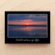Un service de célébration de la vie est un moyen extraordinairement beau de se souvenir de la vie de votre être cher. Cette célébration de l'invitation à la vie présente une superbe photo d'un coucher de soleil sur le devant avec les mots "Célébration de la vie". Au verso de l'invitation se trouvent les détails de l'invitation imprimés sur une photo subtile d'un coucher de soleil. En bas apparaissent les mots, "Une vie si belle vécue mérite d'être magnifiquement rappelée." Une très belle célébration de l'invitation à la vie. Copyright sympathythankyou