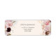 Ceci est une étiquette d'adresse de retour de fête de mariage floral bordeaux et rose blush élégante et glamour. En utilisant un design de floraux roses et bordeaux modernes et chic avec des accents dorés et une flûte de champagne rose, modifiez tout le texte selon les besoins en utilisant le modèle fourni.