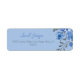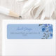Élégant quelque chose de bleu étiquette d'adresse de retour de fête de mariage thème calligraphie avec des fleurs aquarelle. De l'autre côté, il y a des verres de champagne avec un bouquet.