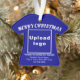 Joyeux Noël! Ornement acrylique avec des textes de voeux Joyeux Noël, votre nom d'entreprise ou d'entreprise, logo, adresse et numéro de téléphone. Les dessins sont des textes bleu clair et blanc sur arrière - plan bleu et en forme de t-shirt. Ornement pour décorer le sapin de Noël dans votre magasin, magasin ou bureau. Ornement pour accueillir visuellement vos clients cette saison de vacances et pour annoncer votre entreprise ou promouvoir votre marque. Customisez-le et utilisez-le pour sensibiliser la marque. Veuillez vérifier l'apparence après avoir téléchargé le logo et tapé des textes. Si l'apparence vous plaît, vous pouvez passer votre commande maintenant. Si vous avez besoin de redimensionner et déplacer le logo et les textes pour s'adapter à cet ornement, s'il vous plaît changer dans l'outil de conception. Vous pouvez également effectuer d'autres modifications selon vos préférences dans l'outil de conception, comme changer la couleur de l'ornement, la couleur de police et le style de police. Joyeux Noël! Je vous souhaite plus de ventes cette saison des Fêtes.