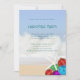 Invitation de Noël à thème tropical ou côtier. L'image arrière - plan est constituée de vagues qui s'écrasent sur le rivage, avec une grosse étoile de mer blanche et des ornements à billes colorés au fond. Le texte imprimé en bleu turquoise est facile à customiser pour les besoins de votre partie.