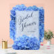 Belle hydrangée bleue fleurs signe de bienvenue de la douche nuptiale hydrangée. Gros panneau acrylique pour personnaliser avec le nom de la mariée. Des fleurs parfaites et réalistes, de la ligne de design Bravest Blue, sont l'arrière - plan de gros texte "Fête des mariées" avec un texte plus petit pour le nom. Cette taille de panneau est de 18 x 24 pouces, avec d'autres tailles disponibles.