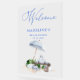 Donnez le ton pour une douche nuptiale rêvée et élégante avec ce panneau d'accueil de pique-nique sur la plage d'inspiration côtière. Doté d'une délicate aquarelle illustrant un cadre balnéaire avec un parapluie chic, une table de pique-nique et des tons bleus doux, ce design sophistiqué et moderne est parfait pour une douche nuptiale sur la plage, une fête de destination ou une fête de jardin extérieur. La typographie de script ajoute une touche d'élégance intemporelle, tandis que l'esthétique neutre complète une variété de thèmes, du boho et minimaliste au luxe et classique.