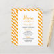 Ajoutez un peu de plaisir à votre mariage ou à votre prochaine fête avec cette jolie carte à rayures orange et blanc. Les cartes menu sont parfaites pour vos * événements professionnels * fêtes personnelles - anniversaire, anniversaire, dîner fête * pays, rustique, automne, mariage / douche nuptiale / dîner de répétition * fêtes * collecteurs de fonds et organismes de bienfaisance. Faites défiler vers le bas pour voir les produits correspondants que vous pouvez apprécier.