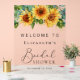 Panneau de bienvenue rustique en acrylique clair avec bouquet d'aquarelle de fleurs de tournesol et de verdure d'eucalyptus, un script de calligraphie chic et une élégante typographie serif.