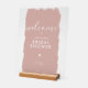 Elégante et sophistiquée Affiche de bienvenue Fête des mariées avec design de script de typographie moderne. Attention à tous les futurs mariés et planificateurs de fêtes : recherchez-vous la touche parfaite d'élégance et de glamour pour votre prochaine douche nuptiale? Ne cherchez pas plus loin que le magnifique Elegant Fête des mariées Welcome Acrylique Signe. Cette enseigne luxueuse et attrayante donnera le ton d'une fête inoubliable. Avec ses accents minimes et sa typographie époustouflante, ce panneau est non seulement beau mais aussi fonctionnel, et sert d'accueil chaleureux à vos invités.