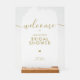Elégante et sophistiquée Affiche de bienvenue Fête des mariées avec design de script de typographie moderne. Attention à tous les futurs mariés et planificateurs de fêtes : recherchez-vous la touche parfaite d'élégance et de glamour pour votre prochaine douche nuptiale? Ne cherchez pas plus loin que le magnifique Elegant Fête des mariées Welcome Acrylique Signe. Cette enseigne luxueuse et attrayante donnera le ton d'une fête inoubliable. Avec ses accents minimes et sa typographie époustouflante, ce panneau est non seulement beau mais aussi fonctionnel, et sert d'accueil chaleureux à vos invités.