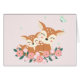 Dessin sucré d'une mère et d'un chevreuil sur une souche d'arbre avec des fleurs et des papillons verts.