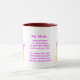 Une mignonne tasse de la Fête des Mères pour une petite princesse rose à donner à sa maman méritante. Le verset dit : Les mamans sont grandes Pour être là, Laver vos vêtements Et brosser vos cheveux. Mais mieux que ça, sont les énigmes de maman, Pour me faire me sentir bien, Après une de mes énigmes! Copyright 2010 HightonRidley