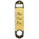 Laissez votre cadeau de Fête des pères être aussi unique que ses boissons! Un ouvre-bouteille rapide avec calligraphie or moderne sur un arrière - plan noir avec des tourbillons est juste pour un cadeau de Fête des pères. L'illustration présente des tourbillons noirs sur un cadre doré. Le TEXTE "Best Dad Ever" au centre a une bordure florale et est personnalisable. Un design inverse avec TEXTE "Happy Fête des pères" est également personnalisable. Un grand cadeau pour Anniversaire/Fête des pères/Toute occasion. Pop les bouteilles comme un barman professionnel avec facilité.