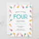 Faites une fête à glaces pour votre petit ! Cette adorable invitation à l'anniversaire comporte une glace couleur arc-en-ciel colorée aquarelle qui est mignon et parfait pour un anniversaire d'été. Invitation avec style ! Tous les détails, y compris (sauf l'âge), sont personnalisables. (D'autres âges et couleurs sont aussi disponibles dans ma boutique !) © Mini Moi Prints
