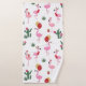 Ce design présente un motif de flamants roses avec ballons de fête et casquettes de Noël parmi des plantes de cactus fleuris. #noël #fêtes #salle de bain #cadeau de noël #cactus #style vacances #cadeaux #flamingo