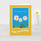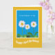 Une carte d'anniversaire d'avril amusante pour une belle-mère, avec trois marguerites blanches sur un arrière - plan Sky Blue. Une partie de la collection Posh & Painterly 'Daisy Chain'.