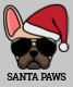 Joignez-vous à la fête avec ce mignon sweat - shirt à capuche de Noël. Le design est composé d'un bulldog de couleur pâle clair portant un chapeau de Père Noël rouge et des lunettes de soleil de l'aviateur avec le libellé "Père Noël Paws" imprimé en dessous.