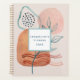 "Feuillage Abstrait géométrique moderne avec nom planificateur." Ce planificateur présente un design abstrait peint en aquarelle dans une palette de couleurs neutres de couleur terreuse rose, terre cuite, rouille, aqua et bleu turquoise. Formes géométriques arrondies, branche feuillue, lignes ondulées et points sont un design tranquille et équilibré qui parle d'harmonie et de paix. L'envers est une répétition de 1/2 goutte du motif. Art par Audrey Jeanne Roberts, artiste et designer de renommée internationale, copyright.