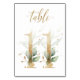 Belle carte de numéro de table avec un motif botanique - une illustration aquarelle de feuilles vertes et dorées. Table 11. Veuillez vérifier tous les numéros disponibles