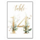 Belle carte de numéro de table avec un motif botanique - une illustration aquarelle de feuilles vertes et dorées. Table 14. Veuillez vérifier tous les numéros disponibles