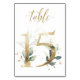 Belle carte de numéro de table avec un motif botanique - une illustration aquarelle de feuilles vertes et dorées. Table 15. Veuillez vérifier tous les numéros disponibles