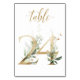 Belle carte de numéro de table avec un motif botanique - une illustration aquarelle de feuilles vertes et dorées. Table 24. Veuillez vérifier tous les numéros disponibles