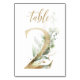 Belle carte de numéro de table avec un motif botanique - une illustration aquarelle de feuilles vertes et dorées. Table 2. Veuillez vérifier tous les numéros disponibles