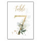 Belle carte de numéro de table avec un motif botanique - une illustration aquarelle de feuilles vertes et or. Table 7. Veuillez vérifier tous les numéros disponibles
