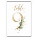 Belle carte de numéro de table avec un motif botanique - une illustration aquarelle de feuilles vertes et dorées. Table 9. Veuillez vérifier tous les numéros disponibles