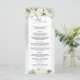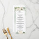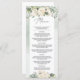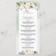 Il s'agit d'un menu mariage moderne bohème avec feuillage verdoyant et eucalyptus et roses blanches brillant or accentué à l'arrière - plan aquarelle
