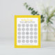 Faites-vous plaisir à l'Invitation Baby shower "Bring Your Sunshine" avec notre Bingo Sheet. Ajoutez une touche interactive à l'ouverture de cadeaux pendant que les invités s'engagent dans un jeu délicieux. Marquez chaque objet et partagez la joie en célébrant la future maman et son précieux lot de joie. Laissez l'excitation remplir la pièce et créer des souvenirs durables!