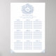 Plan de table en monogramme en forme de dessin en cercle bleu et blanc classique. Modifiez ce tableau de table mariage avec vos propres sièges et les noms des invités. Cercle moderne original de feuilles dessiné par Sarah Trett pour www.mylittleedenweddings.com exclusivement sur zazzle.