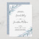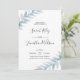 Invitation vos invités à votre mariage avec cette invitation feuille d'aquarelle bleue avec une simple arrière - plan à motifs feuillus et une typographie moderne lettrée à la main. D'autres arrière - plans sont disponibles. © Mini Moi Prints