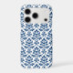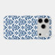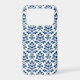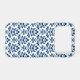 Decorative damask surface pattern design in dark blue detail on a white background.