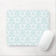 Feuille Damask Pattern Light Teal on White Mouse Pad
