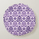 Feuille Damask Pattern Purples on Pink Round Pillow