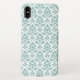 Decorative damask in a vintage influenced pattern, in teal colour detail on a background colour of your choice.