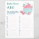 Feuille de jeu de baby shower en papier avec des fraises mignonnes dans un verre dans le style d'esquisse à l'aquarelle.