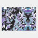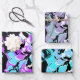 These wrapping paper sheets have an abstract pattern with different colors. One sheet has a purple blue color theme, another has a dark blue purple color theme, and the third one has a blue white color theme.