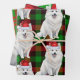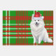 Un adorable chien Eskimo américain est prêt pour la saison de vacances avec casquette de vacances. Ce mignon chien de Noël est jumelé à un plaid de vacances rouge et vert sur cet ensemble d'enveloppement cadeau pour l'amoureux des chiens.