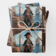 Ce papier d'emballage d'anniversaire présente un pirate debout sur un bateau de pirates.