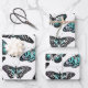 Feuille De Papier Cadeau Aqua Turquoise Papillons noirs Motif aquarelle