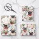 Aquarelle carlin rustique Feuilles de papier enveloppant Noël. Belle aquarelle de style rustique de conception de chiens carlins et botaniques de Noël.
