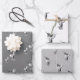 Un colibri noir et blanc peint à la main sur des feuilles de papier d'emballage élégantes en blanc, gris et argent