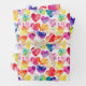 Les coeurs adorables arc-en-ciel enveloppent le papier dans un style aquarelle qui éveille la joie. Trois conceptions différentes pour un emballage cadeau unique.
