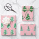 Feuille De Papier Cadeau Aquarelle rose moderne Noël Pin vert