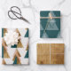 Une interprétation moderne et minimale d'un arbre de vacances. Ce design amusant a des accents de bois ainsi que le vert, le corail et le broussailles. Coordonner le papier vert de pin avec la silhouette de l'arbre et les papiers d'emballage initial et de bois personnalisés.