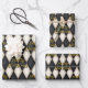 Ce papier d'emballage festif a un motif de chèque en diamant harlequin en noir et blanc ancien avec votre texte personnalisé en lettres d'or ludique. Utilisez-le pour dire "Joyeux Noël", "Joyeux Anniversaire", "Merci" ou tout ce que vous aimez (jusqu'à 2 lignes).